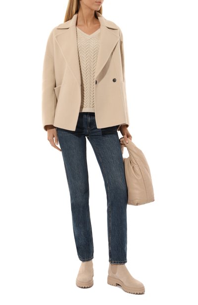 Для изготовления мятно-зеленого поло с фактурным полосатым мотивом использовали ультратонкую мериносовую шерсть Super Tasmania. Ее полые внутри длинные шелковистые волокна делают материал особенно приятным на ощупь и легким, а изделие из него не впитывает запахи и отлично сохраняет тепло, но при этом в нем не будет жарко. Приталенная модель с V-образным вырезом удачно дополнит и джинсы, и классические брюки, и юбку.