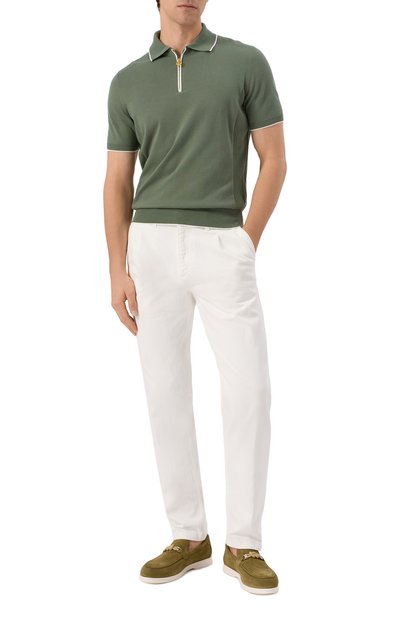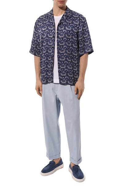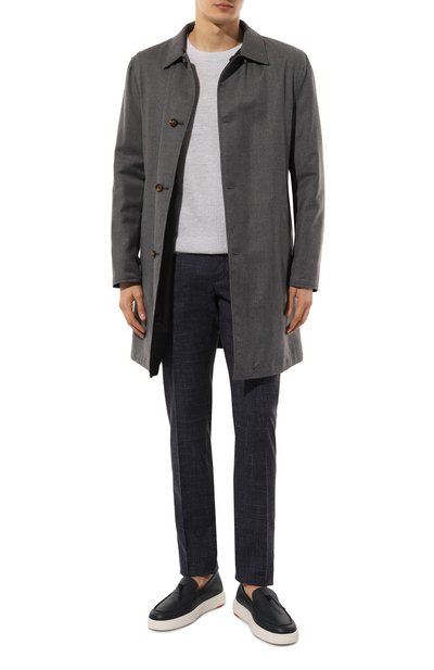 Пепельно-голубые слипоны с широкой белой подошвой не похожи на модель в привычном прочтении. От классического варианта их отличает как стичинг вдоль выреза, так и шнуровка. Для изготовления пары мастера марки, основанной Джузеппе Баракко, использовали мягкую замшу с характерной бархатистой фактурой.