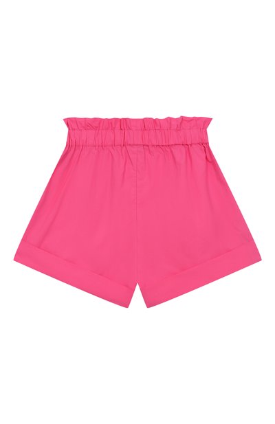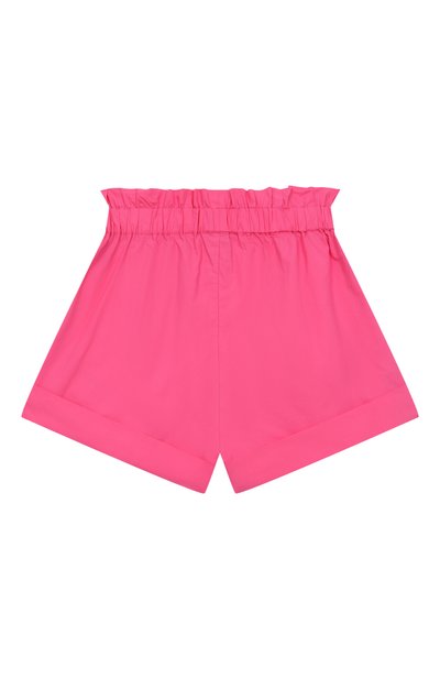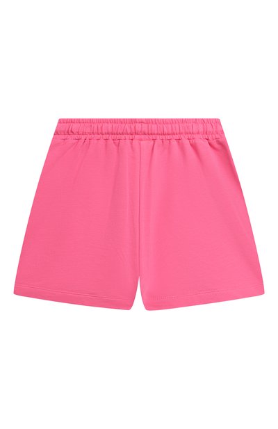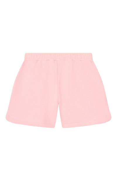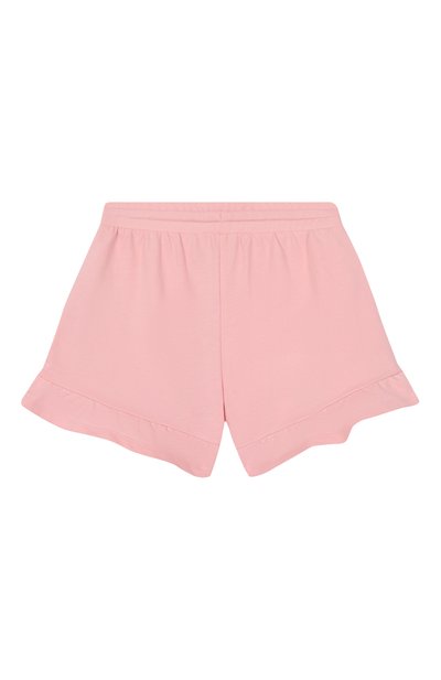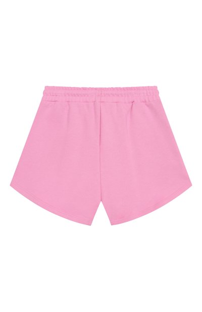В розовых свободных шортах ребенку будет комфортно даже в во время активных игр: для пошива изделия выбрали мягкое хлопковое джерси, которое позволяет коже дышать, не раздражая ее, и немного тянется, не сковывая движения. С одной стороны модель с регулируемым поясом-кулиской декорировали черным логотипом и изображением фирменного плюшевого медведя.