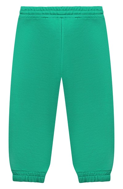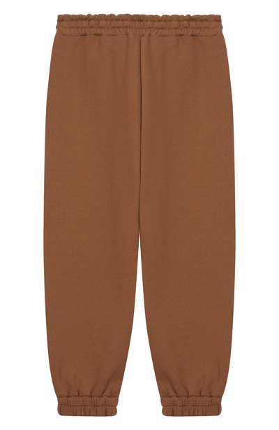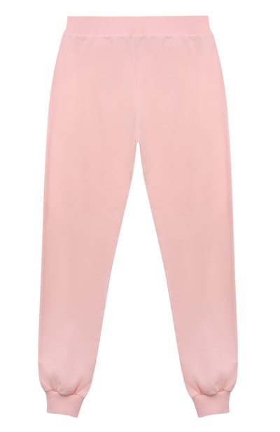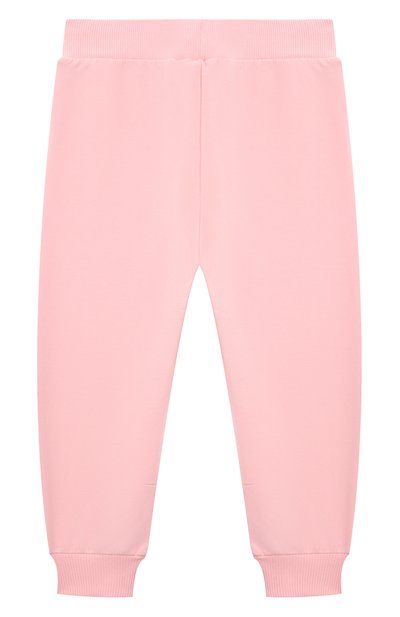 Светло-розовые джоггеры с широким эластичным поясом выполнили из приятного на ощупь хлопкового трикотажа с добавлением стрейчевых волокон: такой материал позволяет коже дышать и немного тянется, благодаря чему изделие не сковывает движения. Модель громко напоминают о своей принадлежности марке: левую брючину украсили крупным черным логотипом, дополнив его рисунком в виде знакового игрушечного медведя.