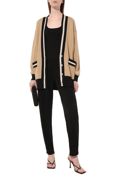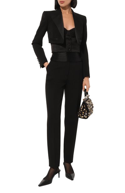 Черные укороченные брюки с отворотами одинаково уместно будут смотреться и в офисе с нестрогим дресс-кодом, и на бранче или прогулке в городе. Для изготовления модели использовали мягкий прочный креп на основе шелковистой вискозы. Посадка изделия на талии регулируется длинным шнурком с эглетами на концах, продетым в эластичный пояс-кулиску.