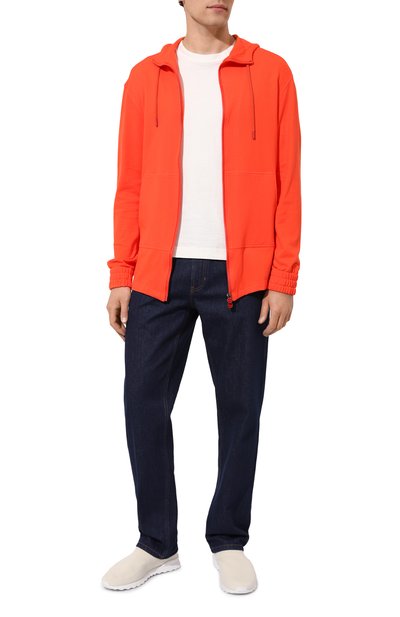 Толстовка оттенка красного апельсина поднимет яркость повседневного образа на максимум. Для пошива модели использовали мягкий хлопковый трикотаж, обеспечивающий оптимальный микроклимат. Принадлежность марке обозначили красными пуллерами с рельефным логотипом.