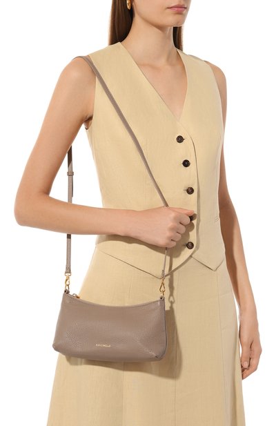 Сумку Half Moon Love с регулируемой ручкой, трансформирующейся в плечевой ремень, выполнили из телячьей кожи. Аксессуар с внутренним карманом украсили эмблемой Love Birds Diamond Cut и фирменной вышивкой, скрывающей NFC-метку.