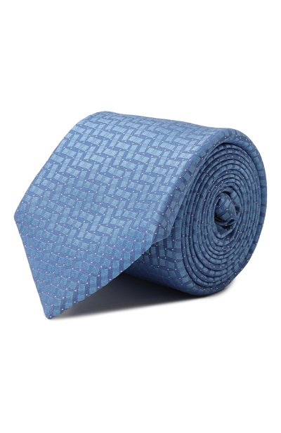 Голубой галстук станет ярким акцентом в деловом образе. Дополнительное внимание к аксессуару привлечет мягкое сияние плотного шелка с фактурным жаккардовым орнаментом. Изделие выкроили по косой, а затем собрали вручную, закрепив эластичным швом, поэтому оно не перекручивается и сохраняет четкую вертикаль.