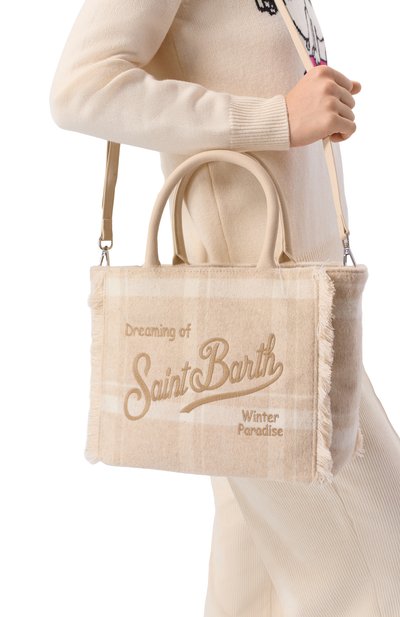 Для изготовления кремовой сумки использовали фактурный текстиль с контрастным жаккардовым паттерном в виде логотипа, словно написанного от руки. Аксессуар с двумя короткими ручками дополнили съемным брендированным ремнем из прочной ленты грогрен, поэтому его удобно носить и в руке, и на плече. Внутрь поместятся смартфон, кошелек и ключи.
