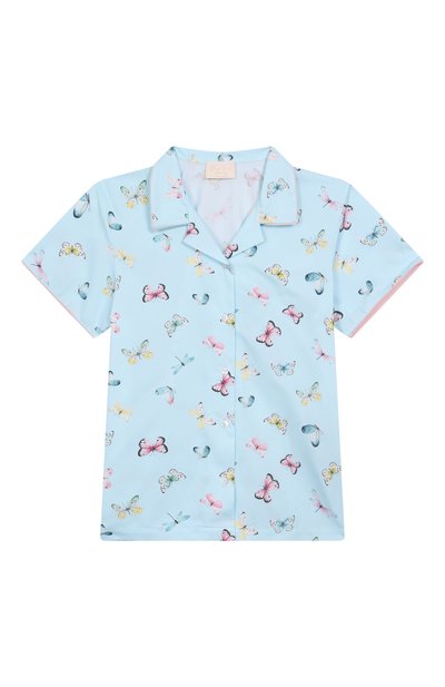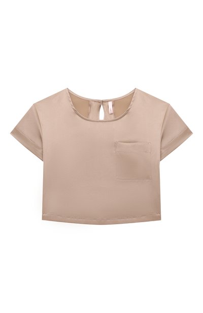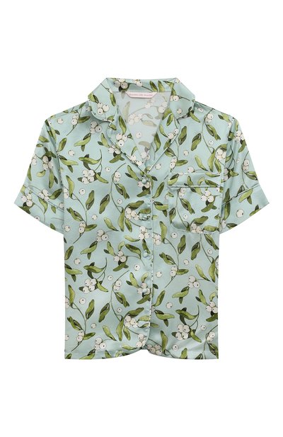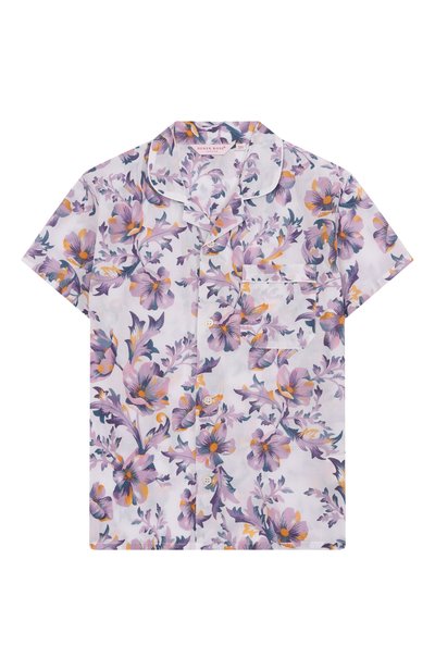 Пижаму пастельного бежевого оттенка сшили из тонкой ткани с цветочным узором. Приятный на ощупь материал на основе дышащего хлопка и шелка нежно льнет к коже. Топ с короткими рукавами и шорты с узким эластичным поясом украсили отделкой из кружева в тон.