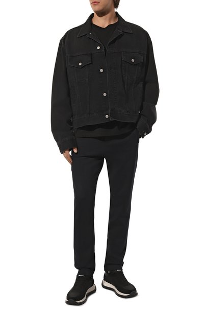 Темно-синие лаконичные брюки с эластичным поясом-кулиской и тремя карманами станут комфортной базой для создания непринужденных повседневных образов. Модель выполнили из мягкого хлопкового трикотажа, который хорошо пропускает воздух и слегка тянется, не сковывая движения. На принадлежность марке указывает узнаваемая двухслойная пластина с логотипом.