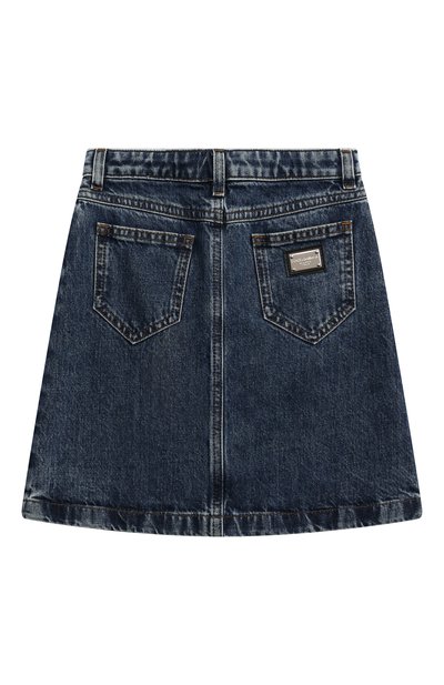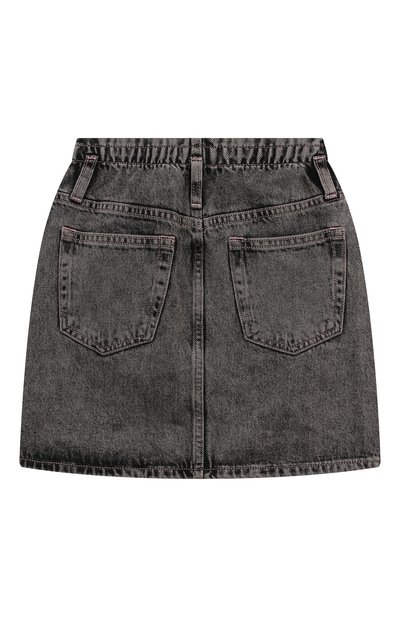 Черная джинсовая мини-юбка со шлевками на поясе и небольшим разрезом спереди в точности копирует взрослую модель, поэтому подойдет для создания образа family look. Изделие из плотного хлопка постирали, сформировав потертости по краям и на швах. Задний накладной карман украсили фирменной брендированной пластиной.
