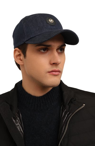 Темно-серую бейсболку выполнили из плотной льняной ткани, которая хорошо пропускает воздух и держит форму изделия. Спереди и сзади ‒ вставки из фактурной кожи миссисипского аллигатора, дополненные металлическими накладками с символикой бренда. За комфортную посадку головного убора отвечает эластичный ремешок.