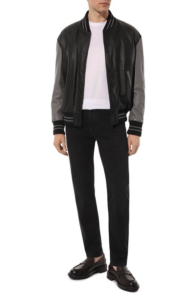 Слегка зауженные темно-серые джинсы способны поддержать как непринужденные, так и более сдержанные casual-образы. Для пошива модели использовали плотный материал на основе дышащего хлопка. Благодаря стрейчевым нитям в составе ткани изделие не будет сковывать движения.