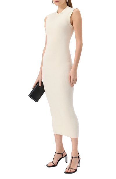 Черные босоножки на каблуке kitten heel мастера марки, основанной Джил Сандер, выполнили из мягкой эластичной кожи. Узкие перекрещивающиеся ремешки почти полностью открывают ногу, поэтому в такой обуви будет комфортно в теплую погоду. Модель с зауженным мысом застегивается лаконичной пряжкой на щиколотке сбоку.