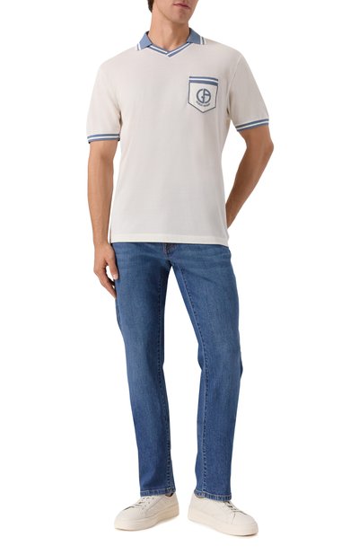 Синие джинсы с выбеленным эффектом украсили небольшой вышивкой в виде эмблемы, которую поддержали брендированным патчем сзади. Для пошива модели прямого кроя, обеспечивающего свободу движения, использовали мягкий эластичный деним. Брюки гармонично дополнят повседневный образ с футболкой и кедами.