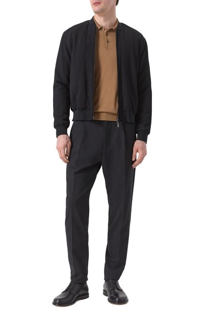 При создании черных дерби использовали конструкцию Black, поэтому они получились легкими, гибкими и прочными. Модель из мягкой тонкой кожи отполировали вручную до глянцевого блеска. Чтобы туфли с миндалевидным мысом и выступающим рантом было удобно надевать, сзади предусмотрели текстильную петлю.
