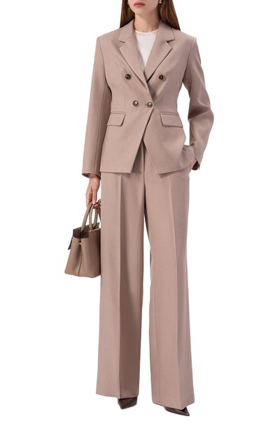 Брюки с боковыми карманами выполнены из шелковистого полиэстера. Эластичный пояс-кулиска регулируется лентой грогрен с брендированными эглетами, которым вторит фирменная пластина слева.