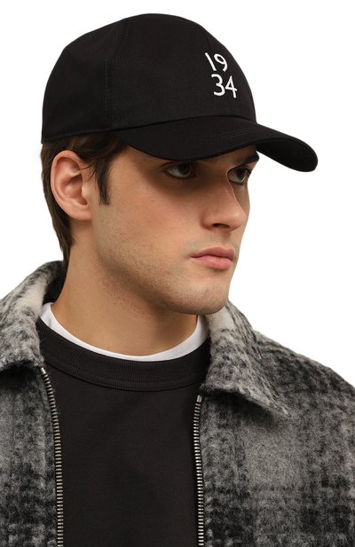Черная бейсболка получилась предельно лаконичной, поэтому впишется в повседневный образ в разной палитре. Модель выполнили из мягкого плотного хлопка с добавлением эластана. Сзади изделие дополнили регулируемым ремешком с металлической брендированной пряжкой. Спереди аксессуар украсили монограммой, вышитой нитями в тон.