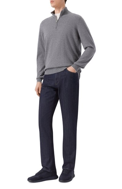 Темно-синие кроссовки выполнили из структурированного трикотажа, который облегает ногу плотно, как носок. Для производства материала использовали полиэстер из переработанных пластиковых отходов. Чтобы нога не смещалась во время ходьбы, предусмотрели накладки из стрейчевой ленты, гибкого полимера и мягкой барха тистой замши. Пару украсили белым логотипом марки, основанной Хуго Фердинандом Боссом, сбоку.