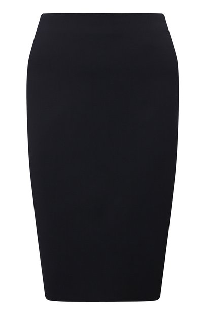 Темно-синяя юбка-карандаш длиной чуть выше колен получилась экологичной: изделие сшили из плотной гладкой ткани, шерсть для которой закупили на фермах, где в уходе за животными соблюдают принципы Концепции «пяти свобод». Модель с высокой посадкой застегивается потайной молнией сзади.