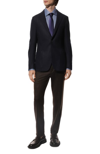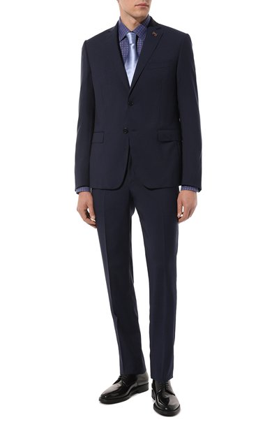 Черно-синий фуляровый узор поможет рубашке классического кроя взять на себя роль главного акцента в образе. Чтобы модель получилась не только эффектной, но и комфортной, рисунок нанесли на легкую ткань из хлопка с длинными тонкими волокнами: такой материал отличается не только мягкостью, но и прочностью, поэтому изделие с закругленной линией низа долго будет выглядеть безупречно.