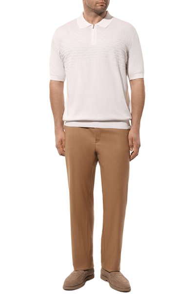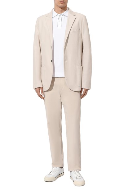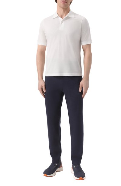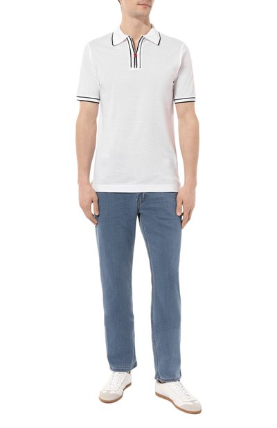 Базовое белое поло из линии Icon сшили из тончайшего джерси, для которого отобрали исключительно легкий и нежный египетский хлопок с длинными волокнами. Сырье тщательно очистили от жестких частиц и дополнительно умягчили, чтобы модель особенно приятно ощущалась на теле. Лаконичное изделие застегивается брендированными пуго вицами со стежком фирменного алого цвета.