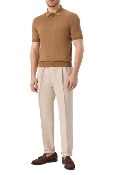 В линию Icon вошло светло-коричневое поло из отборного египетского хлопка. Исключительно длинные, тонкие и гладкие волокна сделал и трикотаж невероятно мягким и при этом прочным. Гладкий эластичный материал не подвержен пилингу и свободно пропускает воздух. Неаполитанские портные создали лаконичную модель в 22 этапа, более половины из которых выполнили вручную.