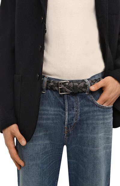 Серый ремень — удачное дополнение для повседневных брюк и джинсов. Для изготовления модели использовали мягкую, но при этом прочную бархатистую замшу, выделанную и окрашенную вручную. Узкие полоски этого материала переплели так, чтобы получился геометрический узор, благодаря которому посадку аксессуара легко регулировать без дополнительных дырок. Изделие застегивается лаконичной квадратной пряжкой с палладиевым покрытием.