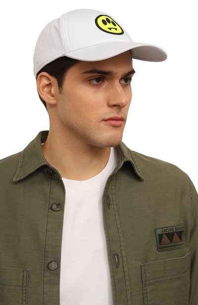Бейсболку с фигурным козырьком сшили из плотной хлопковой ткани, которая не мешает воздуху циркулировать, но защищает от небольшого ветра. На чистом белом фоне особенно ярко смотрятся неоновая эмблема и черный логотип, вышитый сзади. Шири ну аксессуара регулирует ремешок с лентой велкро.