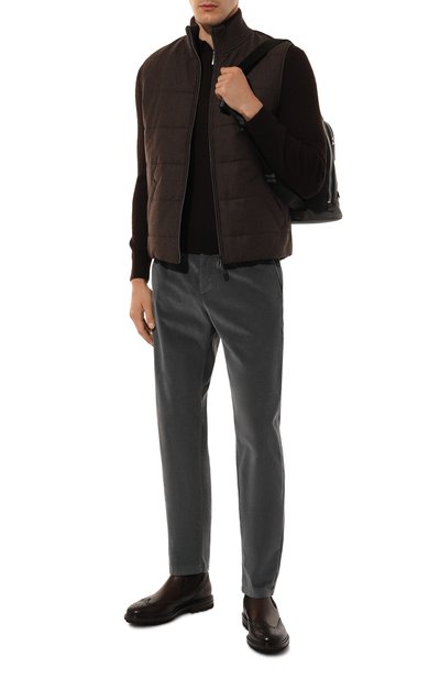 Лаконичные темно-синие брюки справятся в гардеробе с многозадачностью, став основой как повседневного, так и нестрогого офисного комплекта. Для пошива изделия выбрали отборную мягкую шерсть, нити при производстве которой плотно переплели. Пояс дополнили кулиской со шнуром в тон.