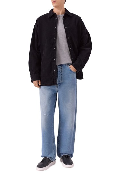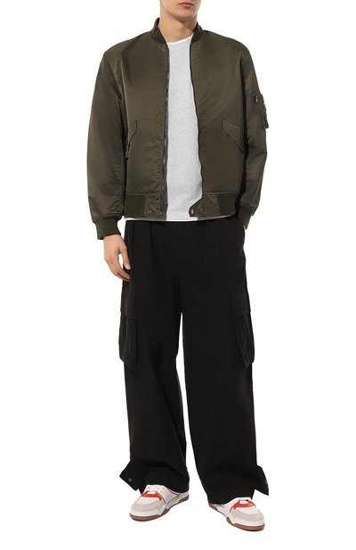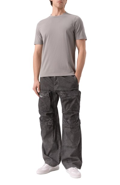 Для изготовления футболки Thompson прямого кроя использовали джерси из чистого хлопка. Спереди модель с круглой горловиной украсили рельефным прорезиненным логотипом в тон.