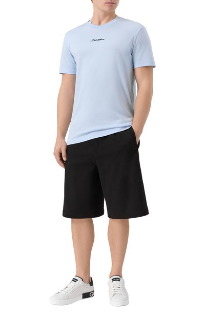Лаконичные черные шорты из мягкого гладкого хлопка, хорошо пропускающего воздух, дополнены широким стеганым поясом-кулиской с металлическими фиксаторами. Легкая модель с врезными и накладными карманами украшена сзади небольшим белым логотипом бренда.
