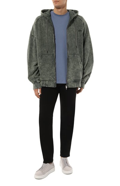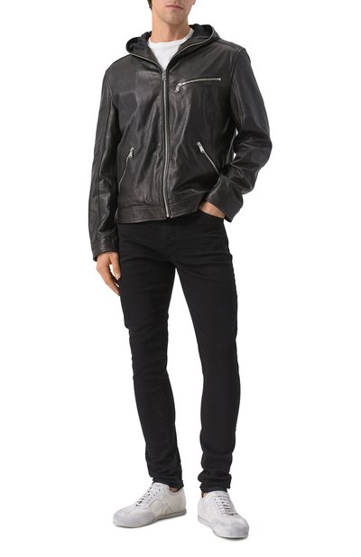 Черные джинсы силуэта Slim fit станут основой повседневных образов разной степени сложности. Для изготовления модели Донателла Версаче выбрала мягкий деним. В состав материала добавили стрейчевые нити, поэтому брюки лучше садятся по фигуре и не ограничивают движения. Монетный карман украсили ремешком, дополненным золотисты м медальоном с рельефной головой горгоны Медузы.