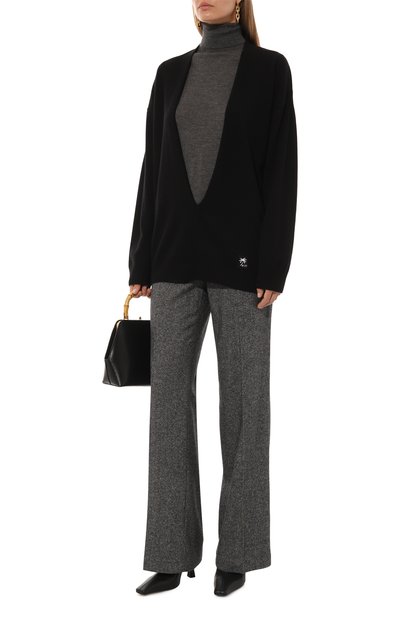 Черный пуловер со спущенной линией плеч выполнили из мягкого отборного хлопка, обеспечивающего оптимальную циркуляцию воздуха. Модель с глубоким V-образным вырезом украсили рельефными прорезиненными эмблемой и логотипом в тон. Наши стилисты предлагают создать повседневный образ с брюками и завершить его мюлями.