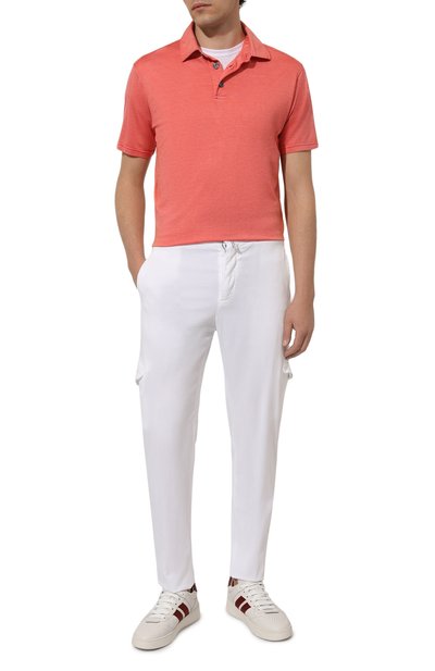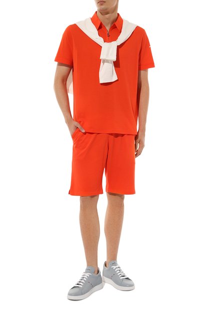 Поло насыщенного оранжевого цвета поможет расширить палитру повседневного гардероба яркими красками. Для его создания выбрали тонкий хлопковый трикотаж, который дает воздуху циркулировать и немного тянется, а на ощупь напоминает шелк. Отложной воротник подчеркнули белым кантом, а принадлежность бренду обозначили небольшим логотипом, вышитым на груди.