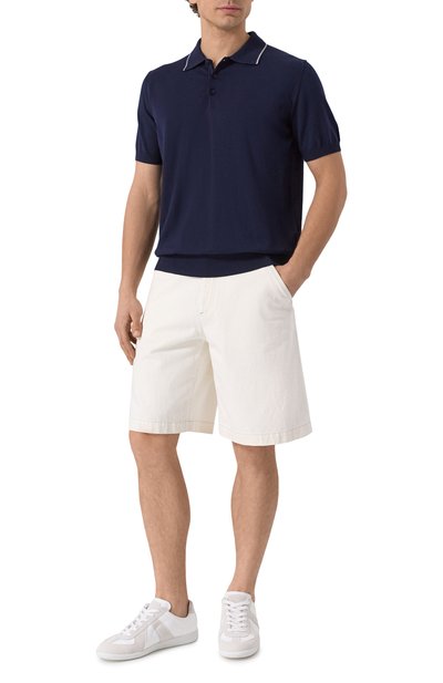 Хлопковое поло обработали в технике мерсеризации, сделав его более прочным и гладким. Отложной воротник и манжеты коротких рукавов подчеркнули узким контрастным кантом. Спереди нитью в тон вышили логотип марки. Лаконичная модель органично будет смотреться и в офисе, и на улицах города.