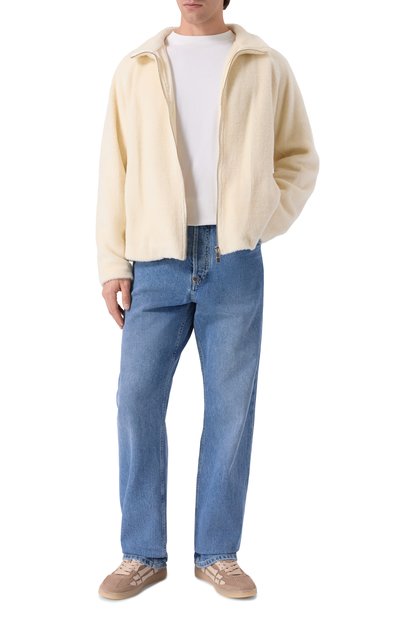 Дизайн бежевых кроссовок Clay ненавязчиво говорит о принадлежности марке, основанной Жанной Ланван. Боковые панели украшены золотистыми логотипами и аппликациями, в которых читаются литеры J и L, а язычок дополнен нашивкой с узнаваемой эмблемой Mother and Child. Для изготовления модели использовали материалы с разными фактур ами: бархатистую замшу, гладкую кожу и сетчатый текстиль. Верх соединили с широкой двухцветной подошвой рантовым методом, обеспечивающим долговечность пары.