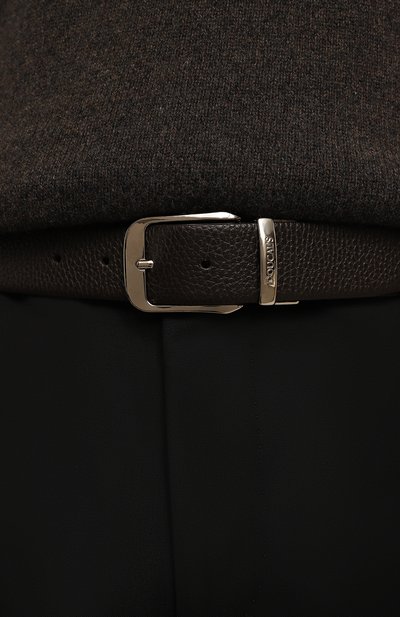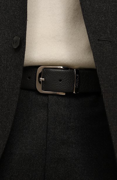 Лаконичный темно-синий ремень поддержит повседневные образы с джинсами или чиносами. Аксессуар выполнили из пластичной ворсовой шкуры теленка, которая слегка блестит на свету и не боится заломов. Изделия застегивается классической прямоугольной пр яжкой, которую украсили выгравированным логотипом бренда.