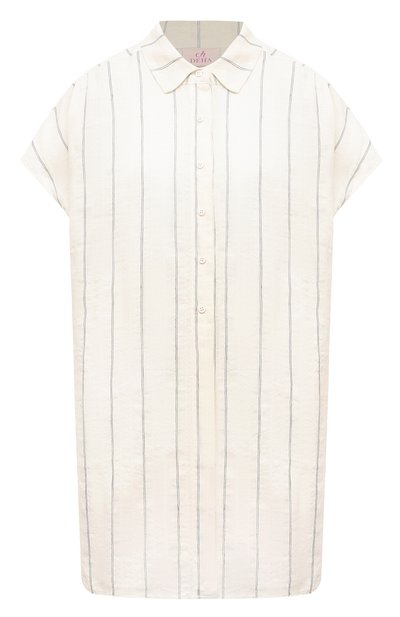 Белая рубашка в узкую синюю полоску – комфортный вариант для жарких дней в городе. Для пошива модели с цельнокроеными рукавами и длинными боковыми разрезами использовали тонкую ткань на основе легкого льна с добавлением шелковистой вискозы и мягкого хлопка. Материал, окрашенный натуральными экологичными пигментами, отлично пропускает воздух, быстро отводит влагу и поддерживает на коже ощущение приятной прохлады.
