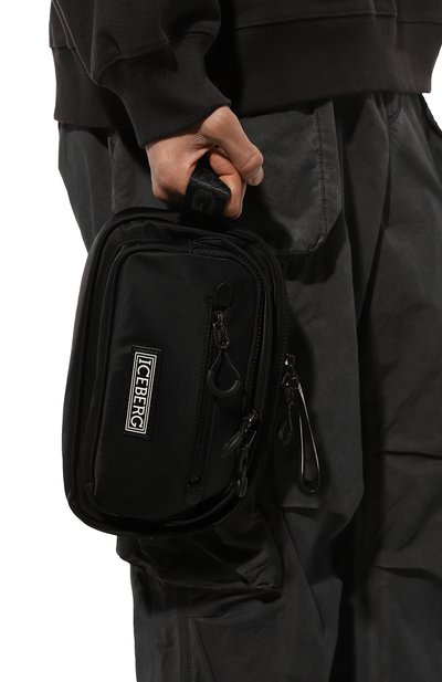 Черный несессер с вместительным основным отделением и карманом, застегивающимися молниями, поможет организовать пространство и не займет много места в чемодане. Для изготовления аксессуара использовали прочный текстиль, легко очищающийся от загрязнений. Изделие с короткой боковой ручкой украсили логотипом спереди.