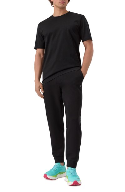 Футболку с необработанными краями и двухслойной круглой горловиной сшили из тонкого хлопкового джерси. На спинке – квадратный брендированный патч.