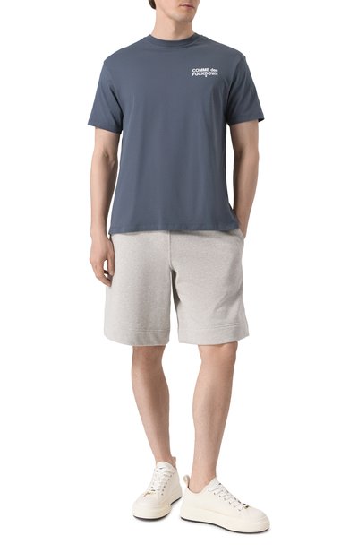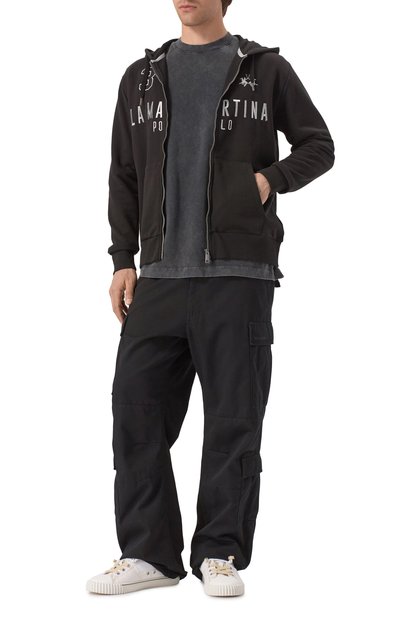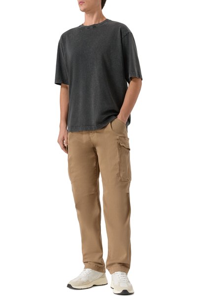 Неравномерно окрашенную футболку выполнили из хлопкового джерси. Модель с необработанными краями украсили сзади фирменной нашивкой с двумя прорезями.