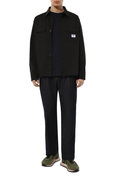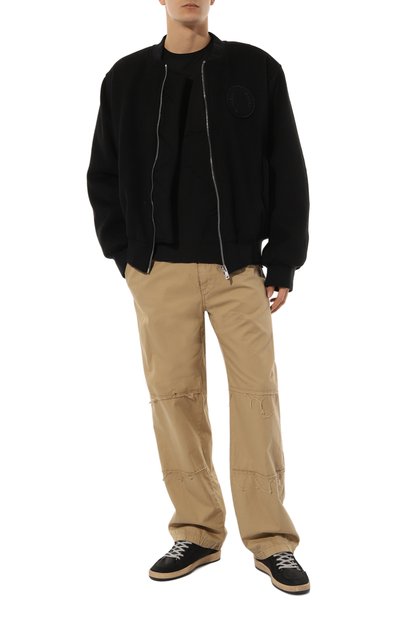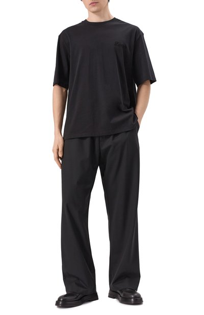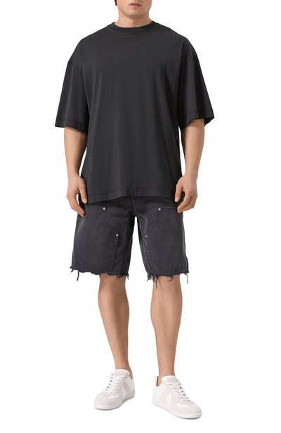 Темно-серая футболка станет удачным вложением в повседневный гардероб. Для пошива модели использовали приятный на ощупь хлопковый трикотаж. Благодаря такому материалу изделие хорошо пропускает воздух и слегка тянется, не сковывая движения. Необработанные края и небольшие потертости придают модели винтажный вид.