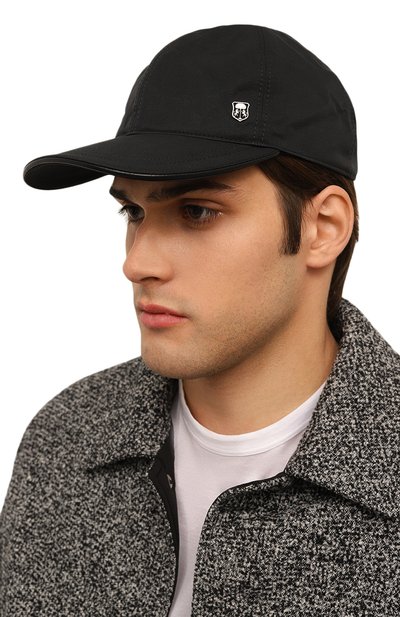 Бейсболку с изогнутым козырьком выполнили из кашемирового габардина. Тулью аксессуара с прошитыми люверсами дополнили регулируемым ремешком велкро, над которым вышили логотип марки.