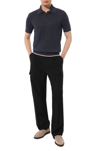 Темно-синее поло в интерпретации команды бренда, основанного Брунелло Кучинелли, получилось особенно комфортным. В составе мягкого эластичного трикотажа с крупным ребристым узором смешали легкий дышащий лен и длинноволокнистый хлопок, поэтому материал идеально пропускает воздух и сохраняет оптимальный микроклимат даже в жару. Цветовые акценты расставили узким белым кантом на поясе и манжетах.