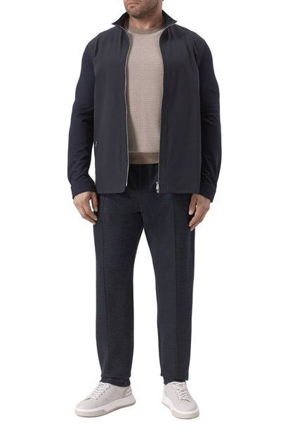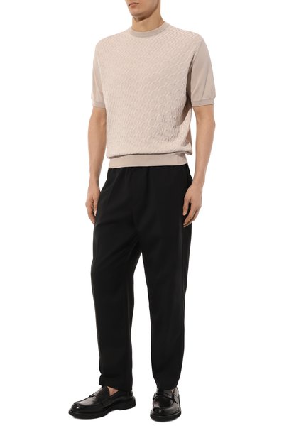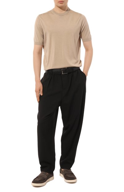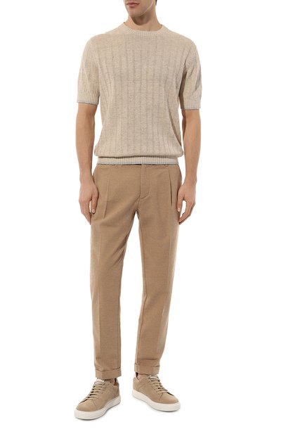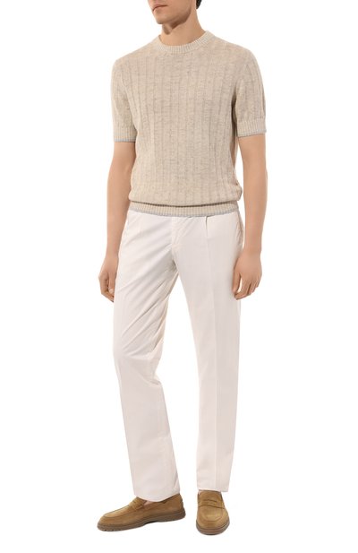 Команда марки, основанной Брунелло Кучинелли, адаптировала кремовый джемпер для теплой погоды при помощи коротких рукавов, как у футболки, и материала. Для изготовления меланжевой модели с фактурным полосатым мотивом использовали тонкую пряжу из легкого льна и отборного шелковистого хлопка. Мягкий трикотаж с терморегулирующими свойствами отлично пропускает воздух и быстро отводит влагу, поддерживая оптимальный микроклимат.
