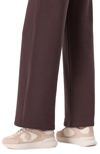 Кроссовки Raina с брендированными вставками выполнили из матового полимера с разной фактурой. Модель с логотипом сзади и эмблемой марки на язычке и сбоку поставили на широкую подошву с зубчатым протектором.