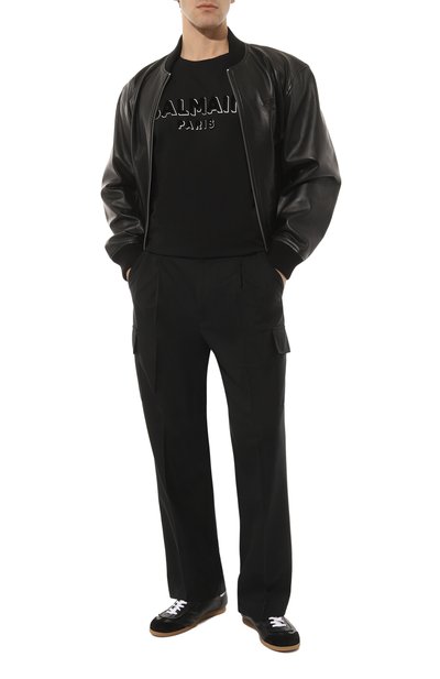 Черную футболку прямого кроя украсили на груди принтом-логотипом и изображением молнии, которое нанесли светоотражающей краской. Для пошива изделия с круглым вырезом использовали легкий мягкий трикотаж из отборного хлопка, который хорошо пропускает воздух, поддерживая комфортный микроклимат.