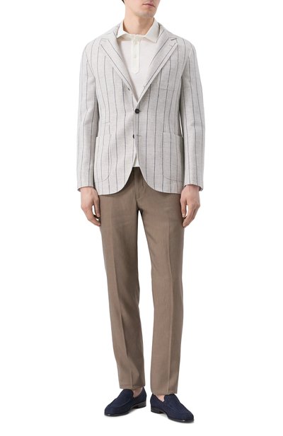 Поло из линии Travelwear выполнили из хлопкового пике. Изделие декорировали спереди вышитой геральдической эмблемой, цвет которой поддержали каймой на манжетах, воротнике и верхней пуговичной петле.