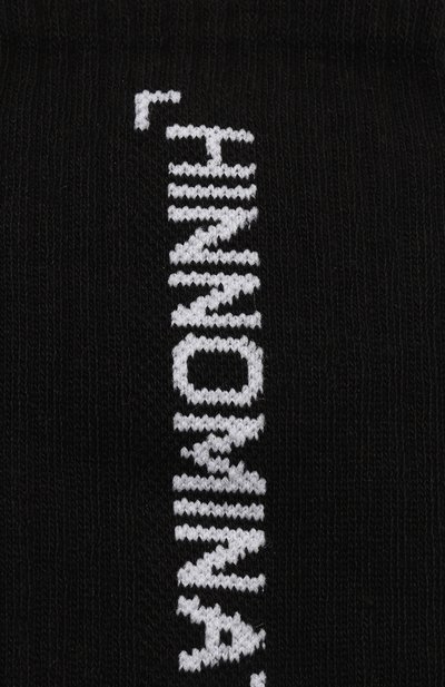 Для изготовления черных носков мастера марки использовали мягкий хлопковый трикотаж, который хорошо пропускает воздух. Чтобы изделие не вытягивалось и не пилинговалось после стирок, в состав материала добавили прочный полиамид и эластан. На высоком паголенке белой нитью сформировали логотип.