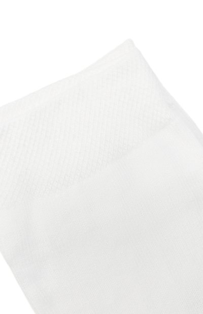 Носки с контрастным жаккардовым логотипом на высоком паголенке выполнили из мягкого трикотажа с фактурным полосатым мотивом. В составе материала объединили тонкий хлопок, прочный полиамид и стрейчевые нити.