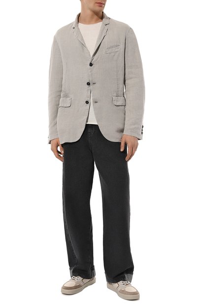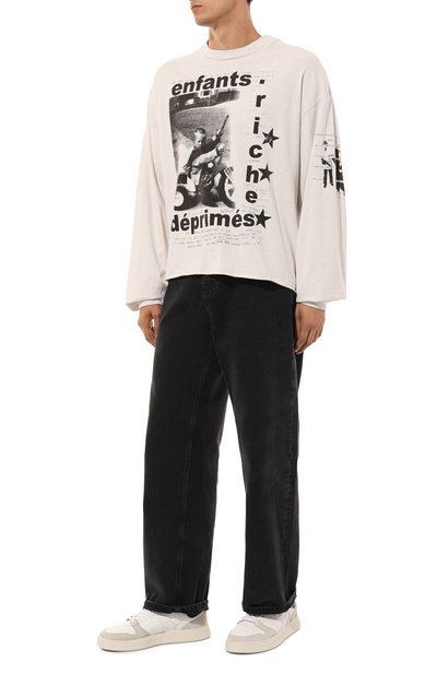 Кеды Low Pop с перфорацией выполнили из зернистой кожи. Модель дополнили вставками из металлизированной замши с эффектом кракелюра. Пару установили на многослойную подошву с рельефным протектором.