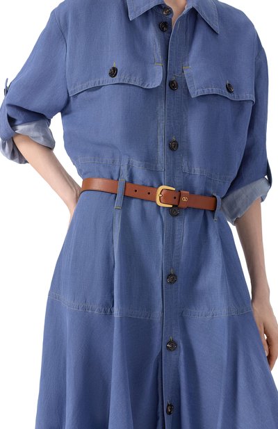 Ремень из гладкой телячьей кожи можно носить наружу черной или коричневой стороной. Аксессуар с двумя тренчиками застегивается золотистой пряжкой Gancini с выгравированным логотипом марки.